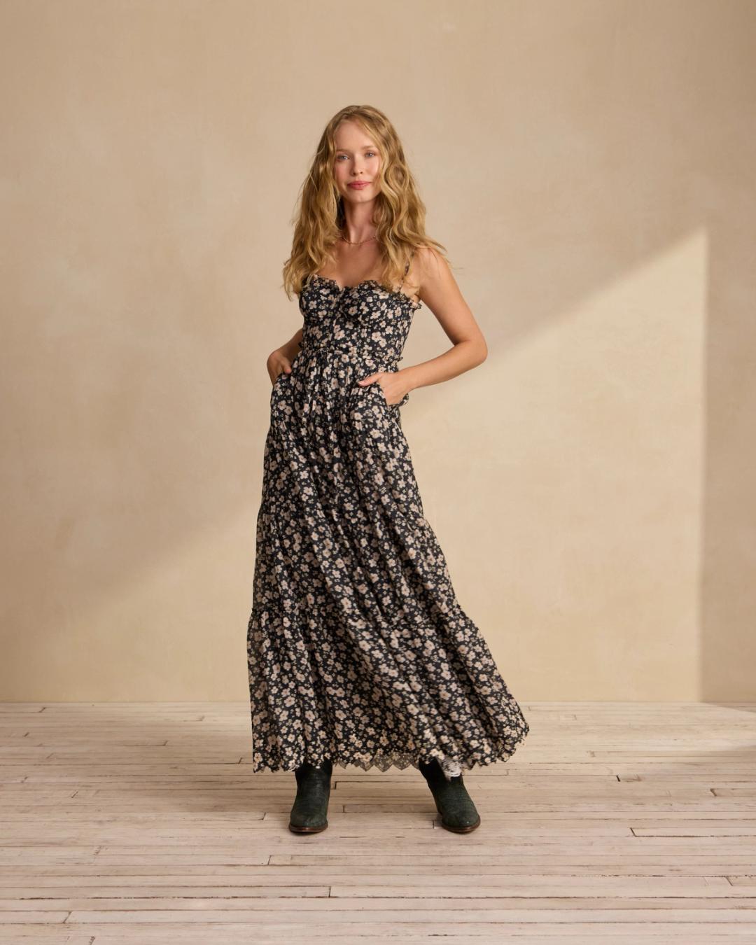 The Willow Dress By Kristopher Brock Black Beige Floral Tecovas